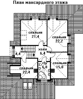 По лестнице из холла можно подняться на мансардный этаж, где расположена зона для отдыха. Она состоит из трёх спален и ванной комнаты с джакузи. Ещё одна спальня, гостевая, расположена ниже уровнем – над помещением гаража.