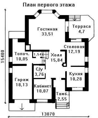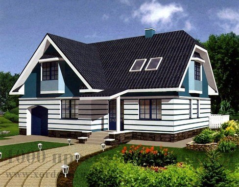 Солидный загородный дом имеет в своём планировочном решении весь перечень необходимых помещений для проживания в условиях повышенной степени комфорта и уюта. Каждый метр полезной площади используется рационально и эффективно. Яркая отделка фасада в сочетании элементами декора создают неповторимый внешний образ дома. Главный вход организован с небольшого крытого крыльца через тамбур с встроенными гардеробными шкафами. Через центральный холл осуществляется органичная связь между всеми помещениями. Из гостиной и столовой можно попасть на небольшую террасу со стороны сада и спуститься на участок.