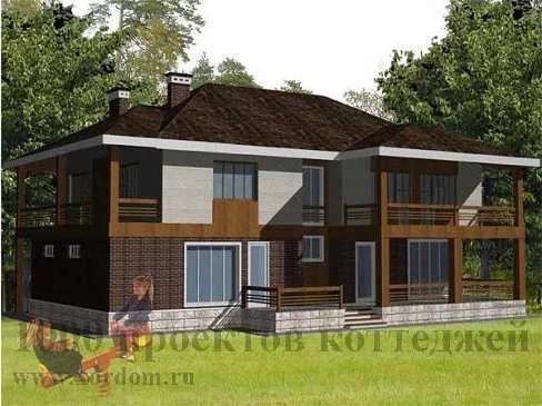 Современный загородный коттедж, предназначенный для постоянного проживания большой семьи из 5-7 человек, отличается строгими линиями, простотой отделки фасада без украшений и пышностей, обилием балконов.