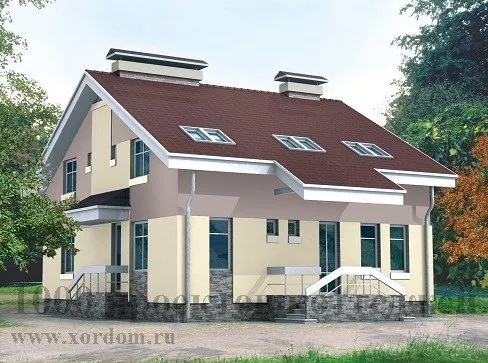 Проект двухэтажного кирпичного дома с окнами на крыше