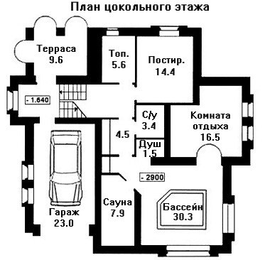 Просторный цокольный этаж этого шикарного кирпичного загородного дома включает в себя множество помещений. Здесь расположен подземный гараж площадью 23 кв.м. для одного автомобиля. Кроме того, в цоколе находится великолепная сауна и бассейн с кристально чистой водой, прошедшей через специальные фильтры. На цокольном этаже разместились санузел с душевой, топочное помещение и прачечная.