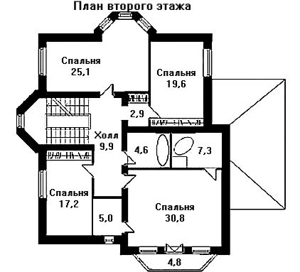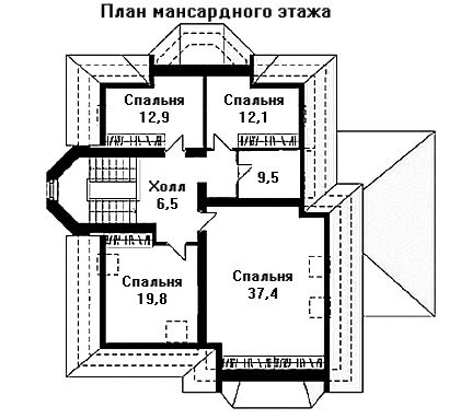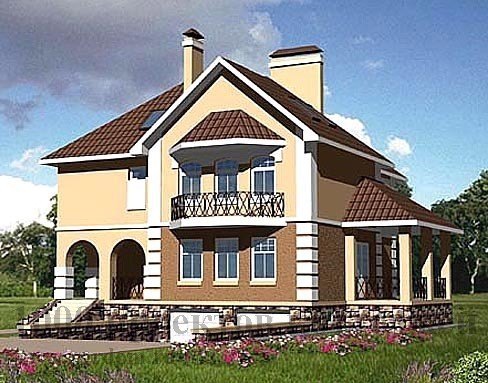 Особый шарм коттеджу придает мансарда, в которой находится несколько комнат. Целых девять спален позволяют разместиться как всей семье, так и обслуживающему персоналу. Места хватит всем. Строительство этого кирпичного коттеджа под ключ обойдётся недорого.