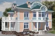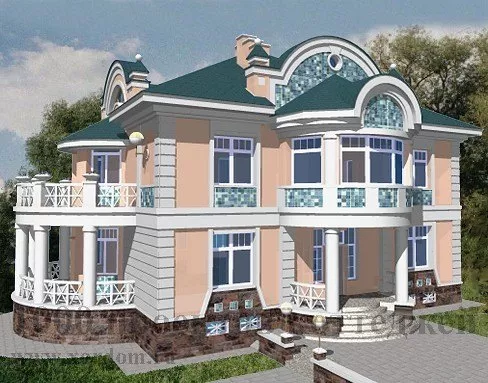 Прекрасный загородный особняк со светлыми шикарно оформленными фасадами, напоминающий виллу в стиле модерн, будет достойным представителем элитной застройки в черте горда. Такой коттедж отлично подойдет для проживания респектабельной семьи составом от 3 до 7 человек. Расширяющаяся к низу россыпь ступенек крыльца, украшенного двумя элегантными колоннами, ведет внутрь дома. Просторная терраса первого этажа, как и полукруглый балкон второго этажа, так же может похвастаться оформлением колоннами. Общий стиль особняка выдержан и во внутренней планировке.