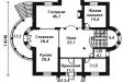 В цокольном этаже проектом предусмотрены хозяйственные помещения, а так же помещения свободного назначения, которые возможно оборудовать в соответствии с требованиями хозяев особняка. Главным украшением первого этажа является светлая двусветная гостиная комната площадью 46,7 кв. м. В ней оборудован камин и глубокий полукруглый эркер, занимающий половину внешней стены. Кухня-столовая так же оборудована камином, расположенном в полукруглом эркере, и занимает территорию 40,8 кв. м. В доме три спальные комнаты, все находятся на втором этаже, однако, любую из них возможно переоборудовать под помещение любого другого назначения.