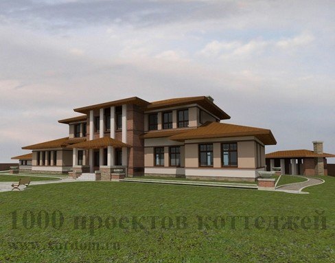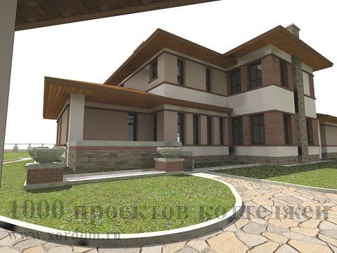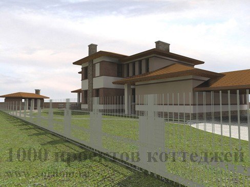 Двухэтажный кирпичный дом на 477 кв.м в административном стиле