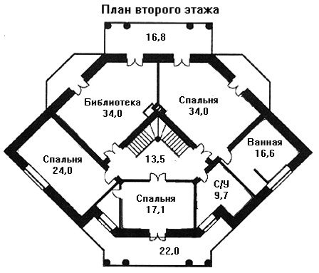 Еще три спальни находятся на втором этаже в соседстве с просторной библиотекой размером 34 кв. м.