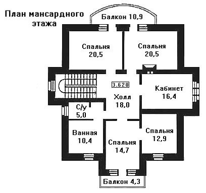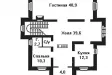 Первый этаж разделен на две зоны просторным длинным холлом, завершающимся лестницей на второй этаж. Одну часть этажа полностью занимает просторная гостиная комната площадью 48,9 кв. м., а вторую делят между собой кухня и спальня. В мансарде так же предусмотрены еще четыре спальные комнаты и рабочий кабинет.