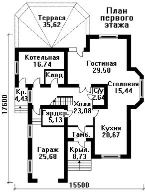 Большой современный дом для проживания в нем круглый год одной средней по численности семьи. Этот проект оснащен гаражом на один автомобиль и имеет полноценный первый этаж и мансардный второй. Цоколя и подвалов коттедж не имеет, что обеспечивает данному проекту возможность постройки на земельных участках со сложными грунтами, а так же экономит средства при строительстве. Все внутренние помещения коттеджа довольно хорошо освещены и просторны, что обусловлено прекрасно продуманным планировочным решениям.