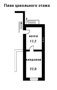 Помещение гаража для двух автомашин с двумя въездами пристроено с левой стороны дома, там же расположен и второй вход в дом. На небольшом цокольном этаже находится котельная и вместительная кладовая.