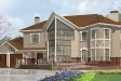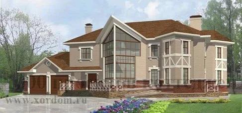 Двухэтажный дом из кирпича на 370 кв.м с застеклённым угловым эркером