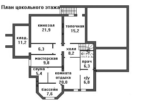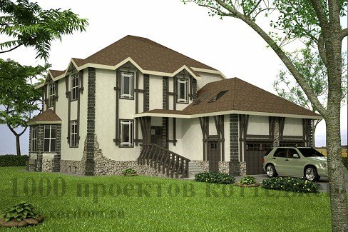 Этот проект понравится каждой семье, ищущей надежный просторный особняк для постоянно жизни за городом, где может свободно и с комфортом разместиться от 3 до 6 человек, а так же несколько гостей на не длительный период пребывания. Отделка особняка радует глаз своим спокойным и домашним очарованием. Для удобства гараж на две машины, расположенный справа от парадного входа в коттедж, оборудован двумя отдельными воротами. Его территория 40,2 кв. м. Оздоровительно-развлекательные помещения банного блока находятся среди комнат цокольного этажа. Там же размещен кинозал и несколько комнат под хозяйственные нужды.