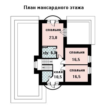 Мансардный этаж, предназначенный для отдыха и сна, поделён между тремя спальнями и ванной комнатой. Спальня хозяев дома имеет собственный санузел и выход на балкон.