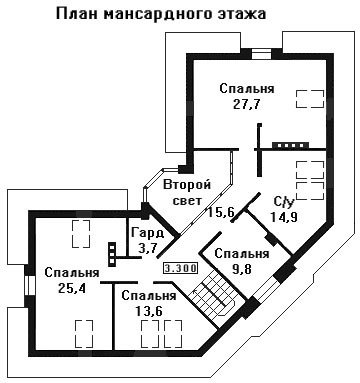 Левую часть первого уровня особняка занимают встроенный гараж и помещение котельной, а также гостевая спальня. Мансардный этаж дома является зоной для отдыха и сна, где устроены две большие спальни, две спальни поменьше, просторная ванная и гардеробная комнаты.