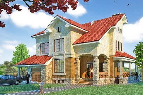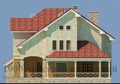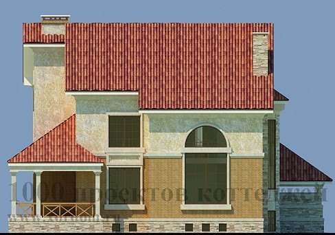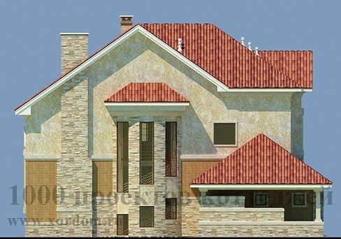 Уютный и респектабельный особняк из кирпича подойдет для постоянного проживания и станет украшением любого пейзажа. В цокольный этаж этого особняка ведет красивая винтовая лестница, полностью расположенная в оригинальном круглом эркере, так же украшающем и фасад самого коттеджа. В цоколе запроектирована большая комната под мастерскую, а так же банный блок, инвентарная, прачечная, котельная и кладовая комнаты. Дополнительным удобством в проекте является наличие гаража для одной семейной машины, из которого можно по небольшой лестнице попасть на жилую территорию дома.