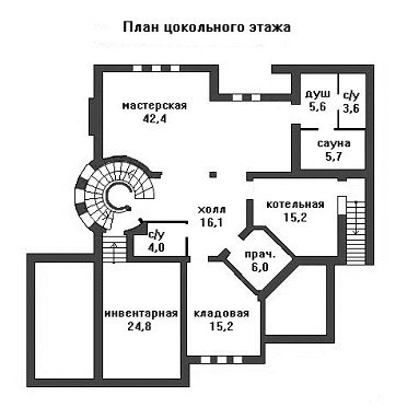 Высота цокольного этажа - 2.8 м ,