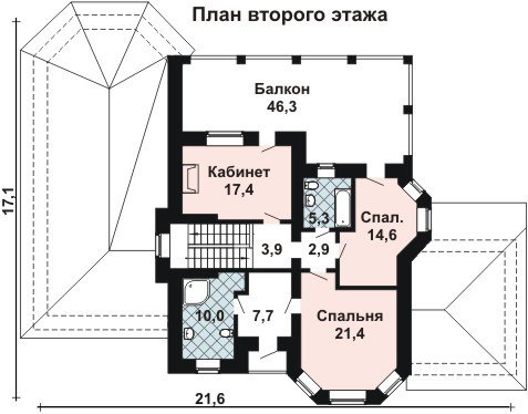Второй этаж отдан под две спальные комнаты и небольшой кабинет, а в мансарде находится небольшое помещение свободно назначения с собственным санузлом.