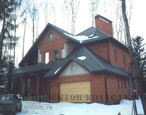 Закрытый гараж для одного семейного автомобиля располагается рядом с крыльцом. Пять спальных комнат находятся на втором этаже. Светлый рабочий кабинет имеет выход на красивую застеклённую лоджию.