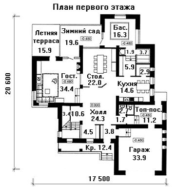 Крыльцо проведёт в просторный холл, плавно перетекающий в столовую и кухню. Со стороны заднего дворика расположилась прекрасная летняя терраса и великолепный зимний сад, который имеет выход в бассейн. Сауна на первом этаже также имеет выход к бассейну.