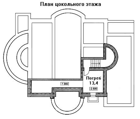 Первый уровень занимает цоколь, где предусмотрено помещение под погреб размером 13,4 кв. м. Гараж на один автомобиль, расположенный на уровне первого этажа, практически совмещен с территорией кладовой и оборудован собственным выходом на жилую территорию особняка. Просторный холл с красивой широкой лестницей ведет в двусветную гостиную с камином или просторную светлую столовую. Из нее можно так же попасть на территорию кухни или в спальню первого этажа.
