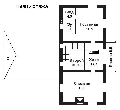 Второй этаж спланирован по такой же схеме, как и первый: в центре расположен холл с выходом на балкон, по обе стороны от которого разместились две спальни.