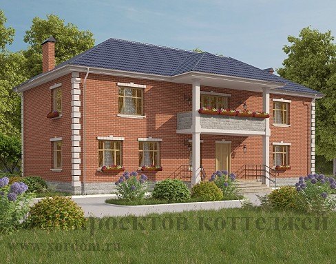 Двухэтажный кирпичный дом до 300 кв.м в классическом стиле