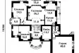 На первом этаже находится широкая гостиная комната с остекленным эркером и видом на придомовую террасу, выход на которую осуществляется из столовой и спальни, размещенными по левую и правую сторону. Еще одна спальня запроектирована слева от парадного входа, что дает возможность переоборудовать ее в комнату для гостей. Справа от холла – библиотека размером 14,7 кв. м. Гараж на два авто находится в правой части коттеджа.