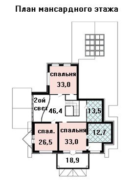 Второй этаж состоит из трех спален и двух санузлов, один из которых общий, а второй принадлежит одной из спален.