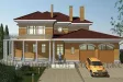 Семья составом от 3 до 5 человек будет комфортно себя чувствовать в кирпичных стенах этого современного просторного особняка. Дом интересен своей необычной формой с полукруглой террасой и округлым эркером по задней стене коттеджа. Такое нестандартное архитектурное решение определяет и уникальную внутреннюю планировку. Длинная полукруглая терраса, огибающая практически половину особняка, имеет общую площадь 50,5 кв. м. Двухместный гараж оборудован двумя раздельными въездами и так же имеет дополнительную площадку перед собой, которая может играть роль дополнительной парковки в случае необходимости.