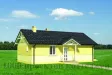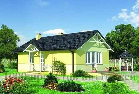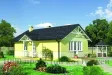 Войти в дом можно как с фронтальной стороны - через небольшое уютное крыльцо, так и со стороны правого крыла - через солнечную и привлекательную террасу, которая ведёт прямиком в гостиную. Небольшой и светлый холл открывает доступ к просторной гостиной, ванной комнате с санузлом, уютной компактной кухне с выходом во вместительную кладовую для хранения продуктов, а также светлой спальне. Отметим, что гостиная вполне может выполнять функции спальной комнаты.