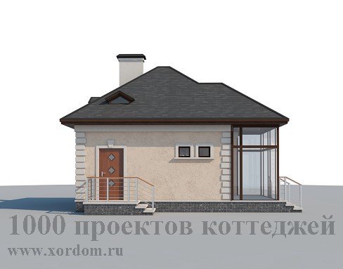 Вход в помещение первого этажа располагается как с фронтальной стороны здания - через привлекательную небольшую террасу, так и со стороны левого крыла - через маленькое крыльцо, которое ведёт через котельное помещение.