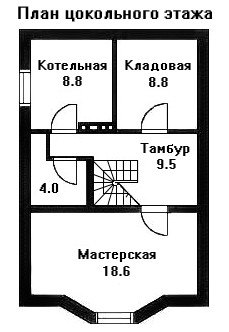 На цокольном этаже расположен блок хозяйственно-бытовых помещений и большая мастерская, которую можно обустроить и для других целей согласно фантазии владельцев дома.