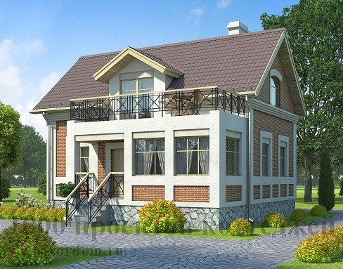 Эффектный загородный коттедж в три этажа, включая мансардный, спроектированный очень компактно и просто, отличается стильным внешним видом, эффективной внутренней планировкой и рассчитан для постоянного проживания семьи из 2-4 человек.