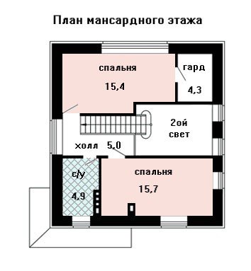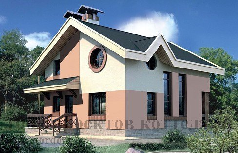 Согласно проекту данного двухэтажного кирпичного компактного дома с мансардой предусмотрено два входа в помещение первого этажа. Один располагается с фронтальной стороны здания через небольшую, но удобную террасу, второй вход находится со стороны заднего дворика через террасу, которая проведёт в гостиную. Светлый и компактный холл позволяет пройти в котельное помещение, санузел, а также кухню-столовую, отделённую от гостиной небольшой перегородкой. Гостиная позволяет попасть в уютную и светлую спальную комнату, которая выходит в небольшой коридор с лестницей на второй этаж. Здесь удобно расположились две просторных спальных комнаты с гардеробными, санузел и второй свет.
