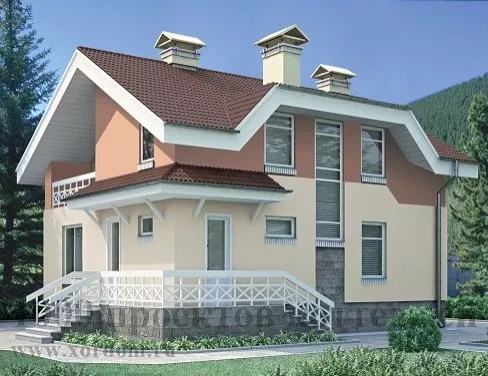 Проект двухэтажного дома из кирпича 8*10 м с фигурной крышей