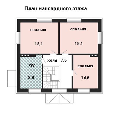 По лестнице из уютного холла первого этажа попадаем в небольшой холл мансардного этажа, площадь которого поделили между собой три спальни и просторная ванная комната.