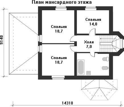 Мансардный этаж представляет собой зону отдыха с тремя спальнями и просторной ванной комнатой с полным комплектом сантехники.