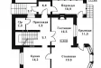 В доме имеется полный цокольный этаж, на котором кроме котельной разместились кладовая и два больших технических помещения, которые могут использоваться по желанию заказчика. Вход организован через небольшой тамбур, из которого можно попасть сразу в дом, или выйти на остеклённую веранду. В доме имеются помещения прихожей, холла с лестницей, кухни, большой гостиной с камином и просторной столовой, расширенной за счёт оригинального эркера и оборудованной выходом на открытую террасу, куда можно попасть также из веранды и спуститься затем в сад. Следует отметить, что пространство первого этажа представляет собой анфиладу из комнат, по которым можно пройти по кругу.
