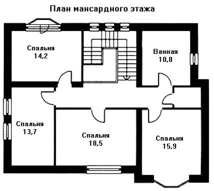 Мансардный этаж представляют четыре спальни и ванная комната.