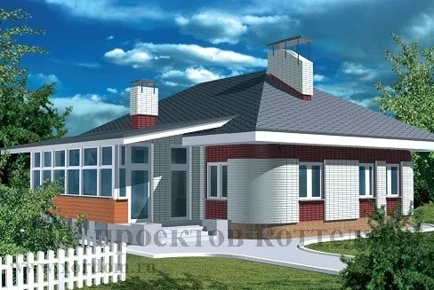 Одноэтажный дом из кирпича с полукруглыми откосами