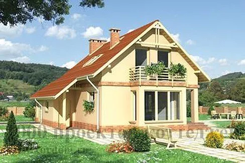 Уютный загородный коттедж в стиле кантри, светлый и колоритный, с крутой двухскатной крышей, далеко выступающие за фасад скаты которой укрывают от атмосферных осадков небольшую террасу и служат кровлей для гаража на одну автомашину, выполненного в виде пристройки к основному объёму дома. Коттедж предназначен для круглогодичного проживания небольшой семьи в составе двух-четырёх человек.