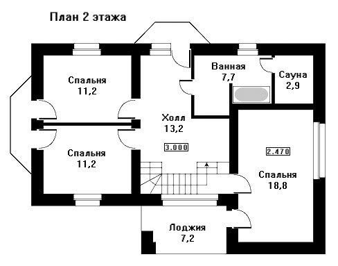 Мансарда является спальной зоной и зоной отдыха, здесь разместились три спальни, просторный холл, большая ванная комната с сауной. Во всех помещениях предусмотрены выходы на балконы или террасы.