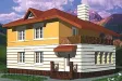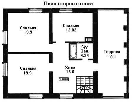 В доме имеются три этажа, один из которых цокольный и предназначен для хозяйственных нужд. Вход в дом организован с высокого мощного крыльца через пристройку в виде закрытой веранды, в которой имеется небольшое кладовое помещение для хранения садовой мебели.
