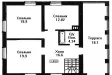 Планировка первого этажа очень простая и удобная, в углу прихожей разместилась лестница, ведущая на мансардный этаж. Половина площади дома отводится под просторную гостиную, в которой выделено небольшое пространство для столовой. Из гостиной через арочный проём попадаем в кухню. Также на этаже находится санузел и ниша для встроенного шкафа.