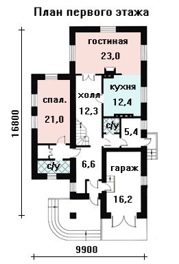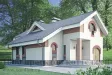 Загородный коттедж эконом-класса, прямоугольной формы, очень рациональный и компактный, отличается наличием пристройки к основному объёму здания, в котором разместилась гостевая спальня с персональным санузлом и гардеробной комнатой. В передней части дома находится встроенный гараж, из которого через небольшой тамбур можно попасть в дом. На первом этаже расположены котельная с отдельным входом со стороны участка, кухня и просторная гостиная с камином.