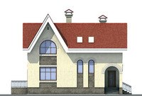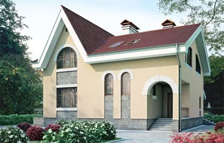 Проект дома из кирпича в 2 этажа 9х11 м с арками и арочными окнами