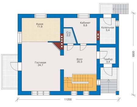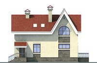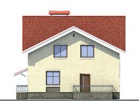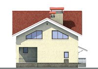 Двухэтажный дом из кирпича для проживания в течение круглого года будет актуален для небольшой семьи. Его современный внешний вид и размеры 9х11 м обеспечивают дому уместность среди практически любой застройки. Несложная крыша, простые линии фасадов и минимальное количество украшающих дизайн фасадов элементов создают общее положительное впечатление, оставляя чувство законченности и изысканной скромности. Учитывая отсутствие цоколя и подвалов, в проекте осуществлено размещение котельной на территории первого этажа, однако вход в нее оборудован со стороны заднего двора.