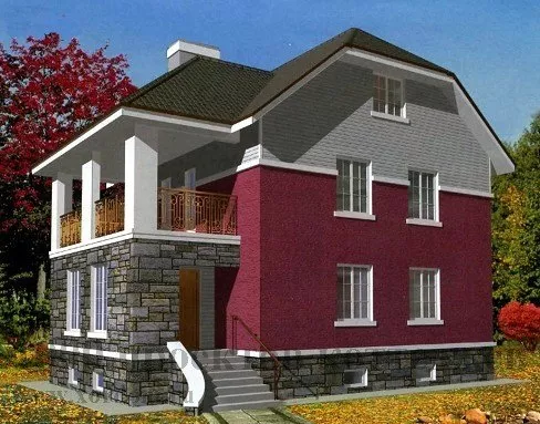 Двухэтажный жилой дом усадебного типа предназначен для строительства в городской и сельской местности. Конструкция дома выполнена по двухпролётной классической схеме с пристроенной к основному объёму верандой, через которую организован вход в дом.