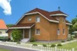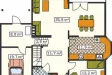 Проект кирпичного особняка создан для большой семьи и предусматривает площадь в 193,9 кв. м. Для удобства в плане запроектирован одноместный гараж размером 19,7 кв. м., расположенный на уровне первого этажа. Прямо за ним находится комната котельной с выходом с обратной стороны дома. Г-образная гостиная занимает площадь 35,8 кв. м. и оснащена выходом на придомовую террасу, откуда можно спуститься в сад. Территория кухни размещена рядом с гостиной и украшена небольшим эркером по внешней стене. Также на этаже находится дополнительная комната для размещения гостей, которая также подойдет на роль кабинета.