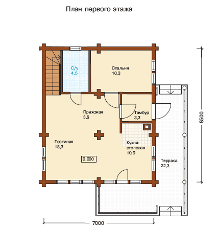 Дом из рубленого бревна на 100 кв. м в стиле кантри