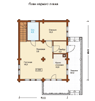 Этот коттедж из рубленного бревна, имеющий площадь всего 98,4 кв.м, станет удачным выбором при наличии под застройку участка земли небольшой площади, а также сэкономит значительные финансовые средства при строительсве благодаря своим малым габаритам и отсутствию цокольного этажа. Дизайн экстерьера тщательно продуман и максимально гармонирует с окружающим пейзажем. Большие окна дома пропускают максимальное количество дневного света, привносящего в каждый уголок этого светлого дома тепло и уют. В коттедже может с комфортом постоянно проживать небольшая семья из 3-4 человек.